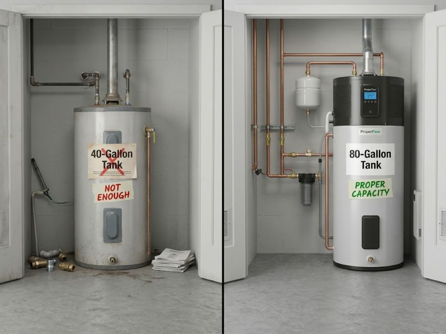 There is a practical reality to water heater sizing that many homeowners are not told until they are deep into the process.